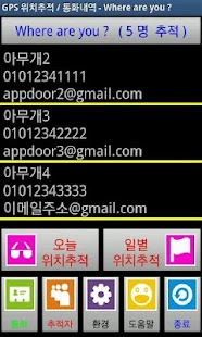* 추적자 A 등록 : 앱 실행후 "추적자" 버튼 --> "변경" 버튼 --> 등록할 위치(두번째) 누름 --> "실행" 버튼 누름